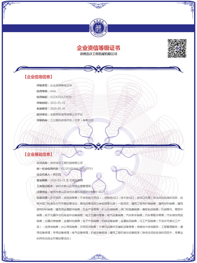 企業信用等級證書